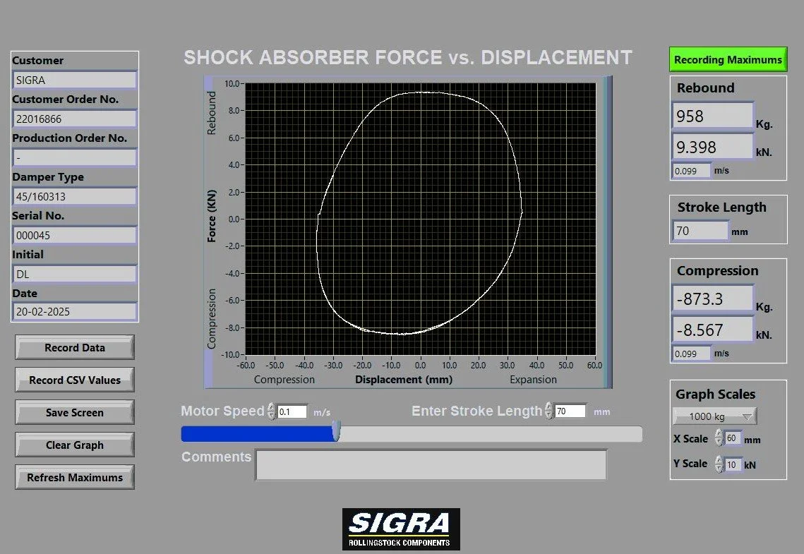 Sigra’s damper testing service can provide valuable insights into the performance of your suspension system helping to reduce life-cycle maintenance costs and to diagnose reliability issues before they become an in service reality.